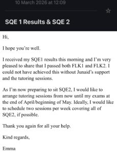 Failing the SQE costs more than just the exam fee. It costs time, momentum, and confidence, and most students only realise this after a resit. Our focus is simple: get you to pass first time, or put you in the strongest possible position to pass next time. You will work with tutors who have successfully completed the SQE and understand exactly how it is assessed, with a clear focus on where students lose marks and how to fix those issues efficiently.